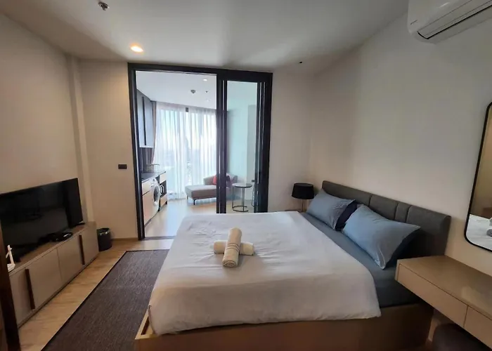 Cette résidence 24A网红无边泳池edge豪华单卧室套房 海滩3分钟 Pattaya de 31 m² bénéficie d'un emplacement central à Pattaya près d'ELLE Luggage Central Festival Mall. Pour diversifier les loisirs des clients, une piscine privée est mise à disposition.